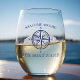 Nautical Compass Rose Boat Name Stemless Wine Glass
