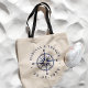 A minimal and classy style compass rose tote bag for your wedding party. It features a unique navy and white nautical style.