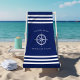 Nautical Compass Rose Welcome Aboard Boat Name Beach Towel