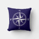 Nautical compass star navy blue square Throw Pillow. North East South West sign. Custom color throw pillow for home, boat, seat, sofa, chair, bed etc. Maritime theme beach home decor.