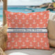 Nautical Coral Blue White Anchor Pattern Name Throw Pillow