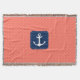 Nautical Coral Polka Dot Pattern Navy Blue Anchor Throw Blanket