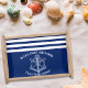 Nautical Custom Boat Name Anchor Wheel Navy Blue Serving Tray