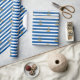 Customize this Stylish Modern Nautical Happy Birthday Wrapping Paper, Blue and white striped design with anchors, set as a template for an easy customization. Replace sample name with your name or your family name.
