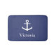 Nautical Custom Name Blue and White Anchor Bath Mat