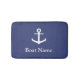 Nautical Dark Blue and White Anchor with Boat Name Bath Mat