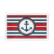 Nautical design with anchor decoration in round shape on red, blue and white striped background