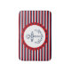 Nautical design with hand drawn anchor decoration on blue, red and white striped background