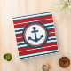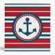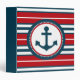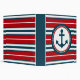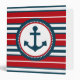 Nautical design with anchor decoration in round shape on red, blue and white striped background