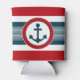 Nautical design with anchor decoration in round shape on blue, red and white striped background