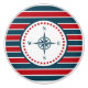 Nautical design with compass decoration in round shape with stars on red, blue and white striped background