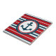 Nautical design with anchor decoration in round shape on red, blue and white striped background