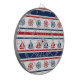 Nautical design with sailing boat and compass decoration on red, blue and white striped background