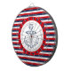 Nautical design with hand drawn anchor decoration on blue, red and white striped background