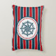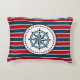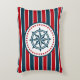 Nautical design with compass decoration in round shape with stars on red, blue and white striped background