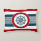 Nautical design with compass decoration in round shape on blue, red and white striped background