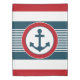 Nautical design with anchor decoration in round shape on blue, red and white striped background