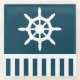 Nautical design with sailing wheel and blue and white stripes decoration on blue background