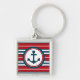 Nautical design with anchor decoration in round shape on red, blue and white striped background