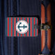 Nautical design with anchor decoration in round shape with stars on red, blue and white striped background