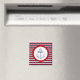 Nautical design with hand drawn anchor decoration on blue, red and white striped background