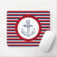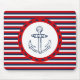 Nautical design with hand drawn anchor decoration on blue, red and white striped background