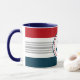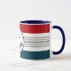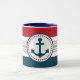 Nautical design with anchor decoration in round shape on blue, red, grey and white striped background
