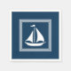Nautical themed design with sailing boat decoration in striped squares on blue background