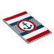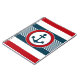 Nautical design with anchor decoration in round shape on blue, red and white striped background