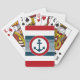 Nautical design with anchor decoration in round shape on blue, red and white striped background