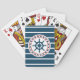 Nautical design with sailing wheel decoration in round shape on blue and white striped background