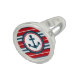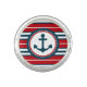 Nautical design with anchor decoration in round shape on red, blue and white striped background