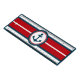 Nautical design with anchor decoration in round shape on red, blue and white striped background