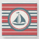 Nautical design with sailing boat decoration in round shape on red, blue and white striped background