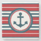 Nautical design with anchor decoration in round shape on red, blue and white striped background