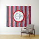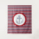 Nautical design with hand drawn anchor decoration on blue, red and white striped background