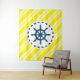 Nautical design with sailing wheel decoration on yellow and white striped background