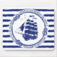 Blue nautical emblem with sailing ship on a striped background | © and ® Bigstock® - All Rights Reserved.