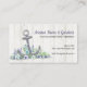 This nautical business card features a watercolor anchor festooned with blue, purple, and white flowers on both the front and back of the card. A weathered white wood plank background continues the nautical theme. Great for a nautical or ocean-centric business such as a retail shop, artisan, antique dealer, seaside florist, or home furnishings. Available with matching items.
