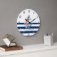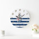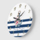 Nautical,Floral Anchor Navy Blue Stripes Large Clock