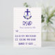Nautical anchor and monogram framed by a lightened version of patriotic florals: white rose, blush pink peony and light blue. Preppy pink and white stripes for a summer, beach, or destination wedding event.