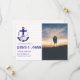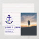 Nautical anchor and monogram framed by a lightened version of patriotic florals: white rose, blush pink peony and light blue. Preppy pink and white stripes for a summer, beach, or destination wedding event. Photo template via Pixabay licensed under CC0 and must be replaced with your own photo.