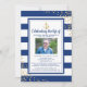 Set sail on a heartfelt journey of remembrance. Our nautical celebration of life invitation combines the calming blue and white stripe background with a touch of gold glitter, all tied together by a sailor's anchor symbolizing strength and stability. Each invite comes with a cherished photo slot and a funeral service template that is simple to alter, ensuring your loved one's memory is honored as you wish. Navigate through grief with grace and embrace the support of friends and family with this beautifully designed invitation.
