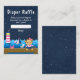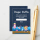 This cute and fun diaper raffle enclosure card features a nautical sailor girl monkey on a wooden deck with a seagull and a crab. In the background there is a pink and white lighthouse, a cute bird on a sailboat, ocean waves and a navy blue starry night sky. The text combines bold and serif fonts for a stylish and modern look. This is perfect for a nautical themed baby shower.
