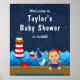 Nautical Girl Monkey Red Navy Baby Shower Welcome Poster