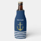 Nautical, Gold Anchor Navy Blue Striped Bottle Cooler