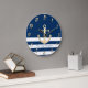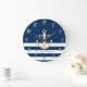 Nautical, Gold Anchor Navy Blue Striped Large Clock