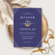 Nautical Gold Anchor Stripes Navy Blue Wedding Invitation