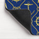 Add a nautical touch to your desk with this coastal themed mouse pad, featuring gold lighthouses, ship’s wheels, anchors, and sailboats, framed by gold rope with nautical knots against a navy blue background.