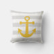 Nautical Gray Stripes Mustard Yellow Anchor Throw Pillow